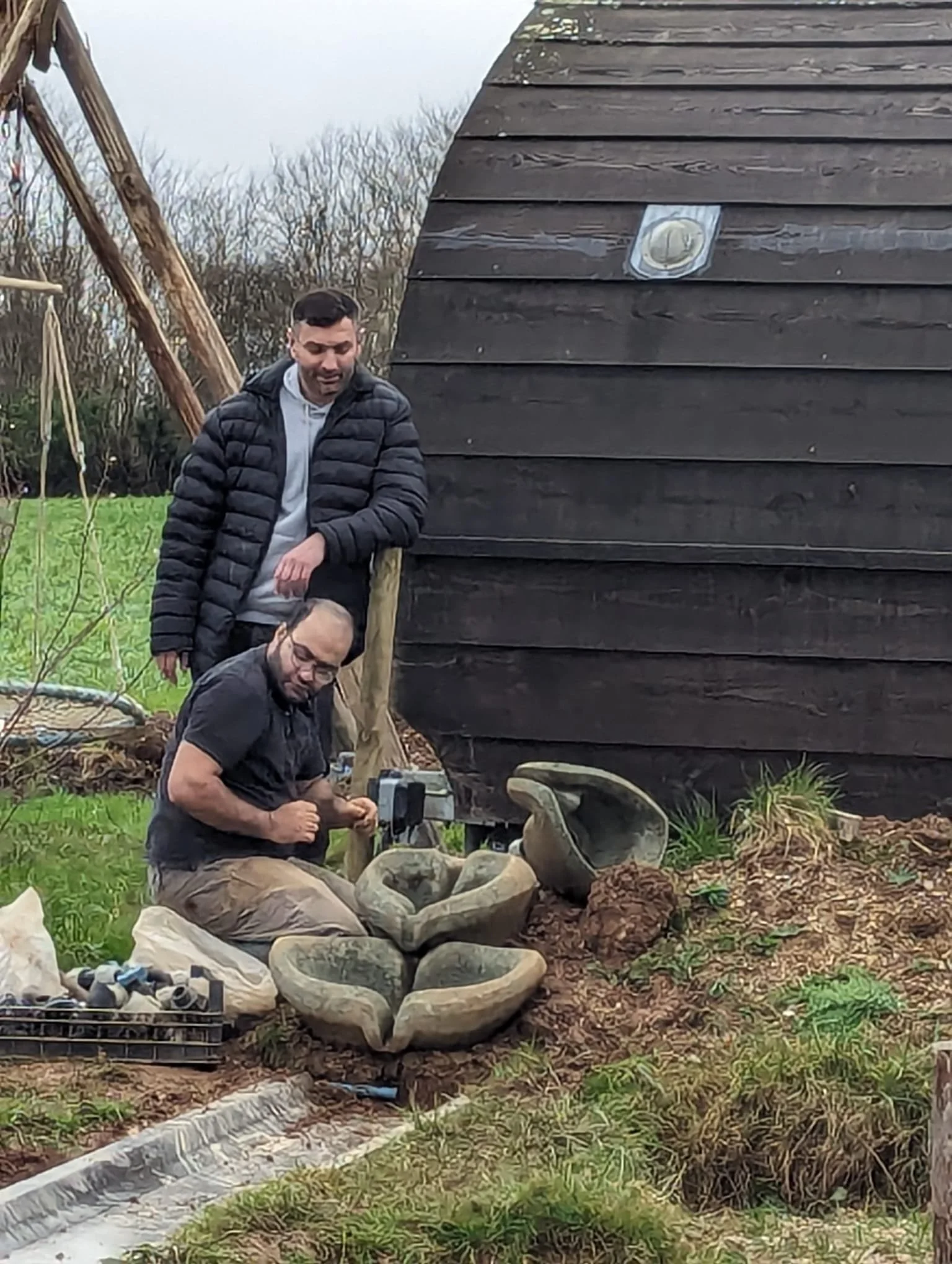 A big thankyou to support from the local community and people seeking asylum who have volunteered at the farm, helping us create a Wellbeing Garden for Children. Originally designed in 2022 by 3 cohorts of Permaculture Students, and aligned with Froebel’s ideas from our ‘critical friend’ and elder Jacqi Cousin with the understanding that gardens can nurture child development. The garden is a place of the elements - earth, air, fire, water (and metal) where children can be inspired through their bodies, relationships and senses, nature-connection, creativity and playfulness. The garden will include a (‘zen’) sandpit, a fire pit, water features, and a nest swing. Our ‘Diversity in Gardens’ volunteers continue to help us with the groundwork whilst cooking and sharing cultural cuisine with Hannah from the farm.