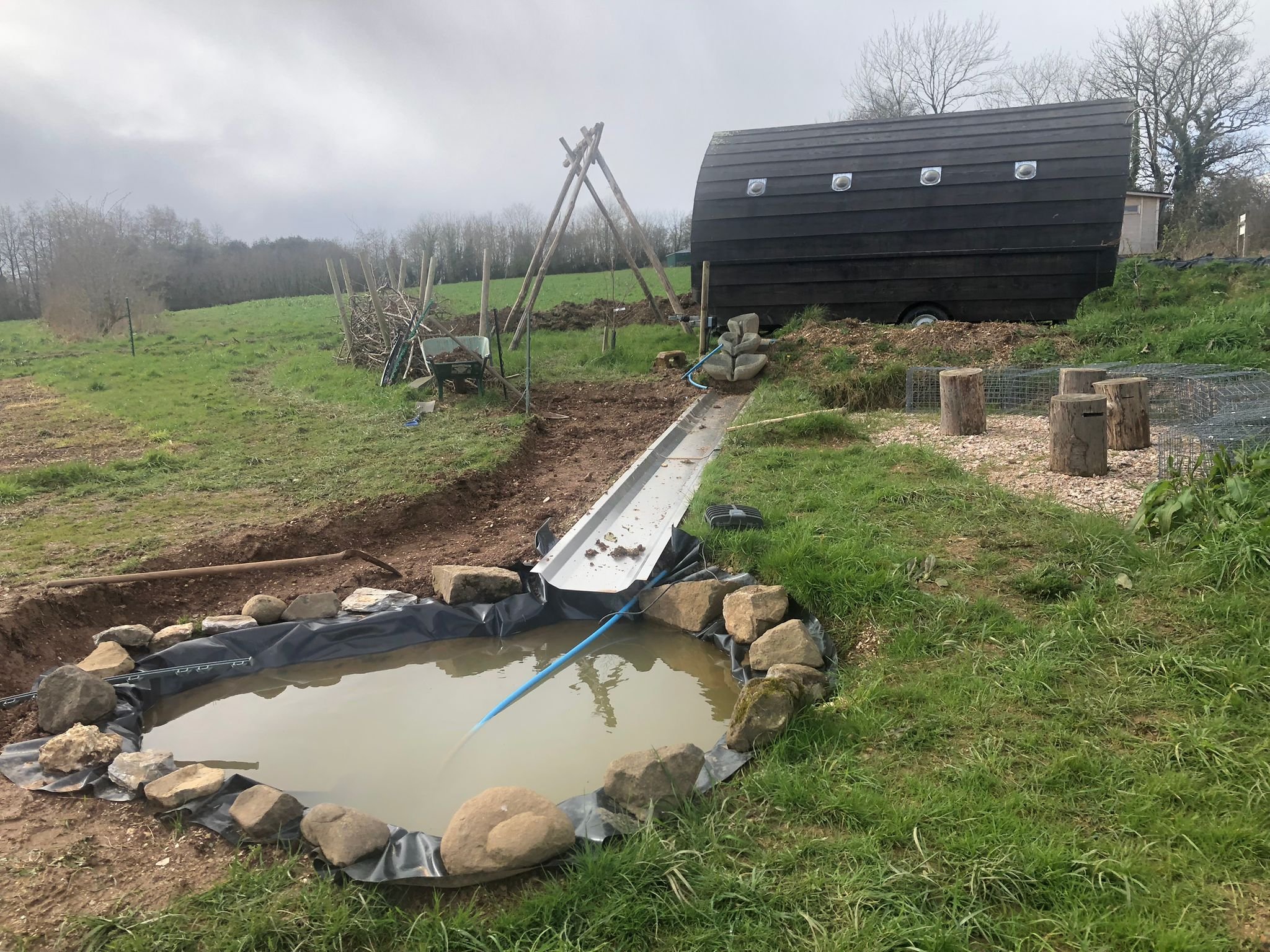 We made progress in the wellbeing garden, digging the area for a beach around the pond leading to a planned sensory path alongside the water feature. The beach will hold painted pebbles celebrating Tifa on March 15th.