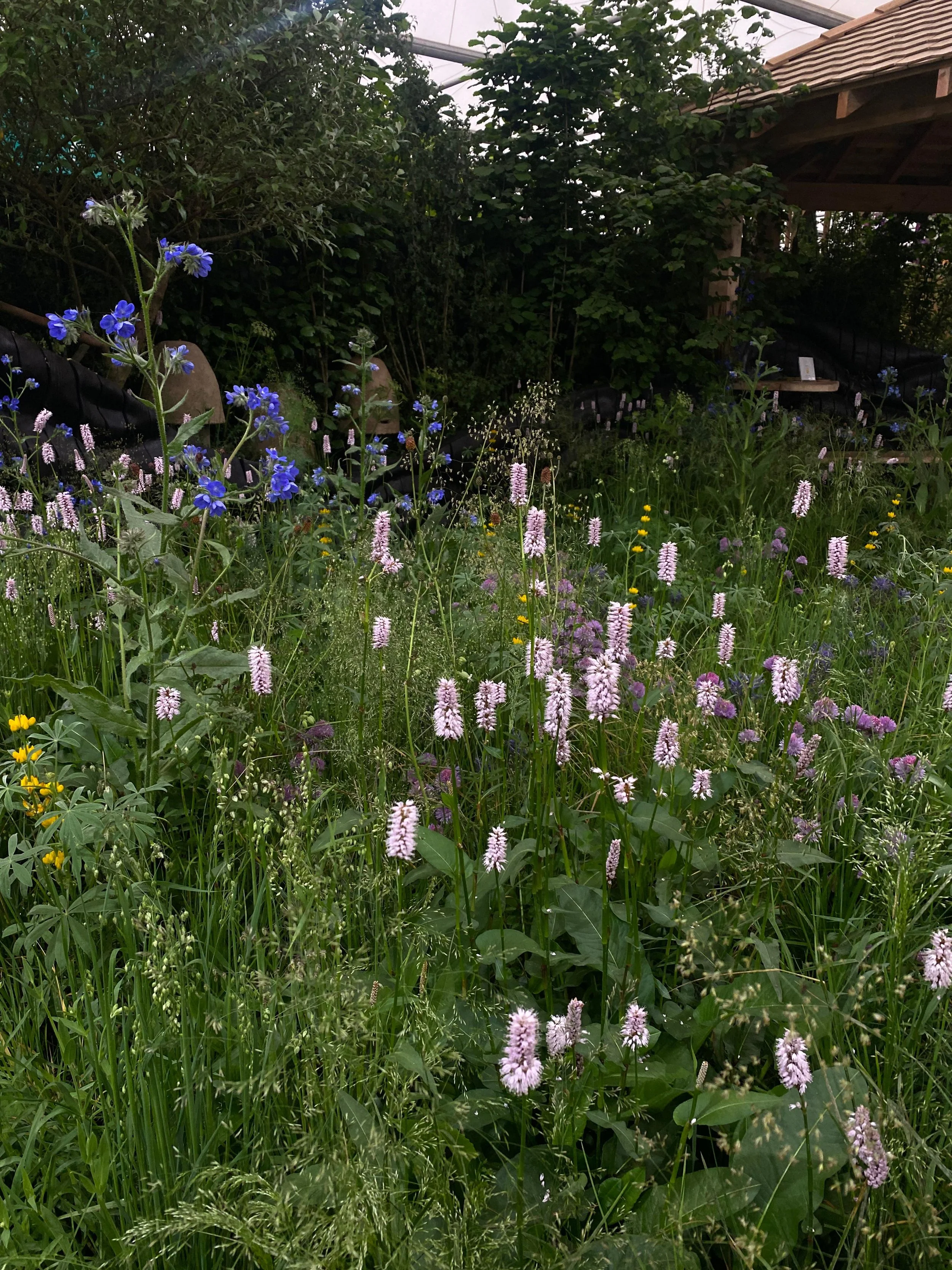 The planting scheme takes inspiration from wild meadows, with a mix of ornamental grasses such as Deschampsia cespitosa, Sesleria autumnalis, Briza media, and Hordeum jubatum, which combine with edible perennials to offer a harvest for both people and wildlife. The pioneering ‘edible meadow’ combines a selection of feature plants including Persicaria bistorta, Camassia quamash, and Lupinus luteus, to create a rich tapestry of yellows, blues, and pinks. This trio of beautiful plants are commonly grown in gardens across the UK, but few people know that they are great food crops too and they could offer a myriad of gut health and microbiome benefits.
